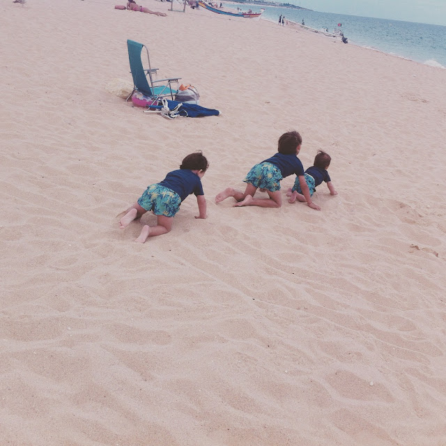 Eles andaram livres, "sem" muitas regras, sem horas marcadas. Deram mergulhos no mar quente e quando esteve vendaval sopraram bolinhas de sabão e ofereceram bolachas às gaivotas. Foi giro de se ver!! [o filme está no nosso Instagram ]